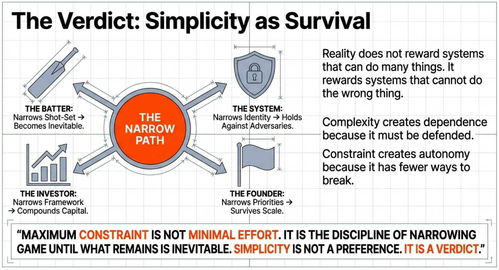 And that is why the discipline of maximum constraint is so rare: it requires the courage to narrow the game before the world narrows it for you.