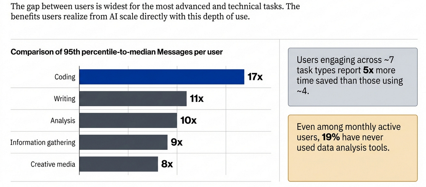 75% can now do tasks they couldn’t do before (coding, analysis, automation)
