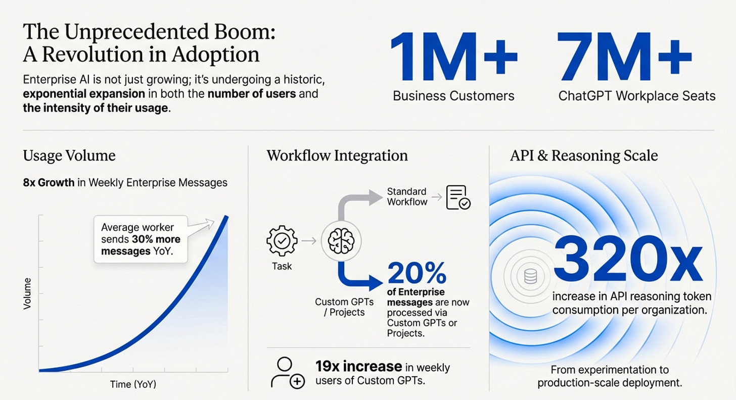 As per the The state of enterprise AI report by OpenAI