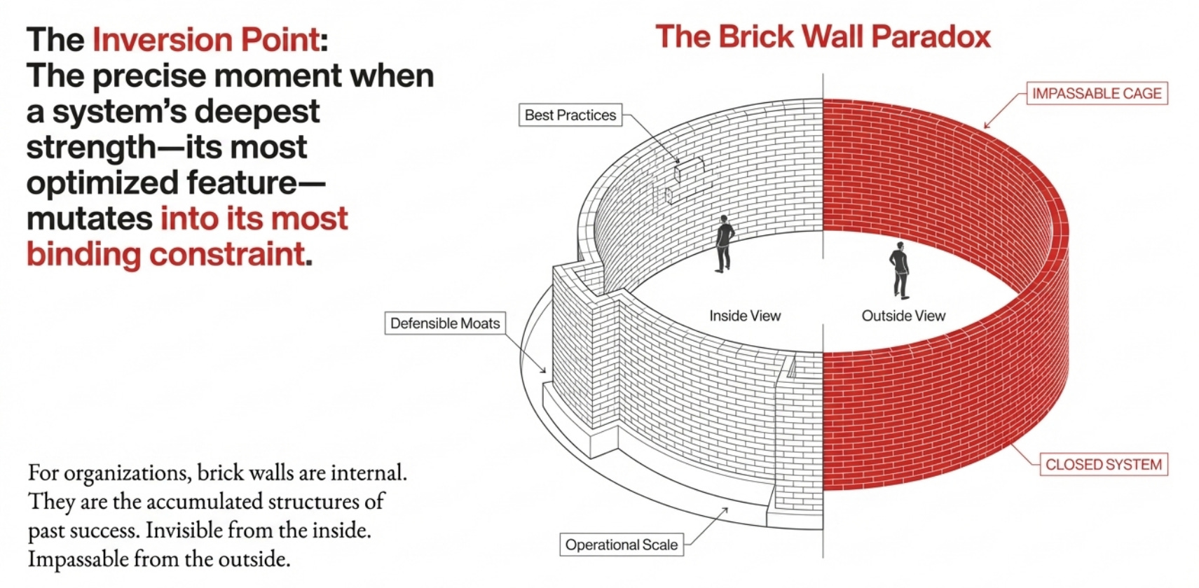 For a successful organization, brick walls are internal. They are the accumulated structures of past success—the processes, the hierarchies, the “proven” models. From the outside, these walls look impassable, a fortress of market share.