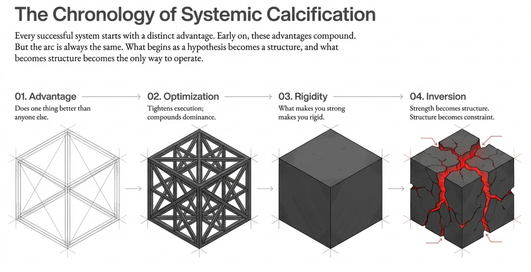 Advantage leads to optimization. Optimization calcifies into rigidity. Rigidity yields to inversion.