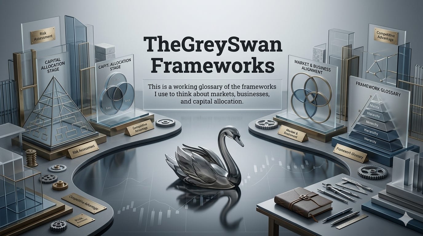 The frameworks developed across TheGreySwan essays.